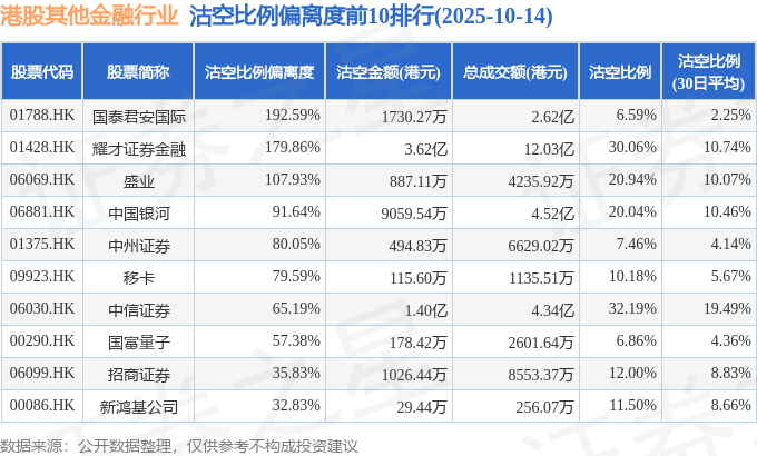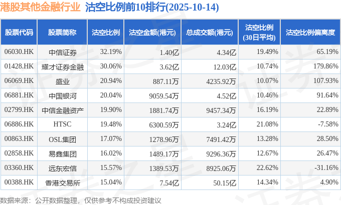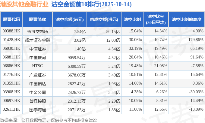 2025年按交易量排名的Top加密货币交易所- 官方推荐10月14日港股其他金融行业沽空数据盘点香港所、耀才证券金融、中信证券沽空金额位居行业前三
