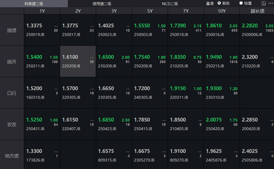 一级存单方面,今日3M国股在1.50%-1.56%位置需求较好,1Y期国股报在1.61%-1.62%的位置。二级存单方面,6M国股成交在1.5900%附近(较前一日下行1BP),1Y国股成交在1.6175%的位置(较前一日下行1.25BP)。