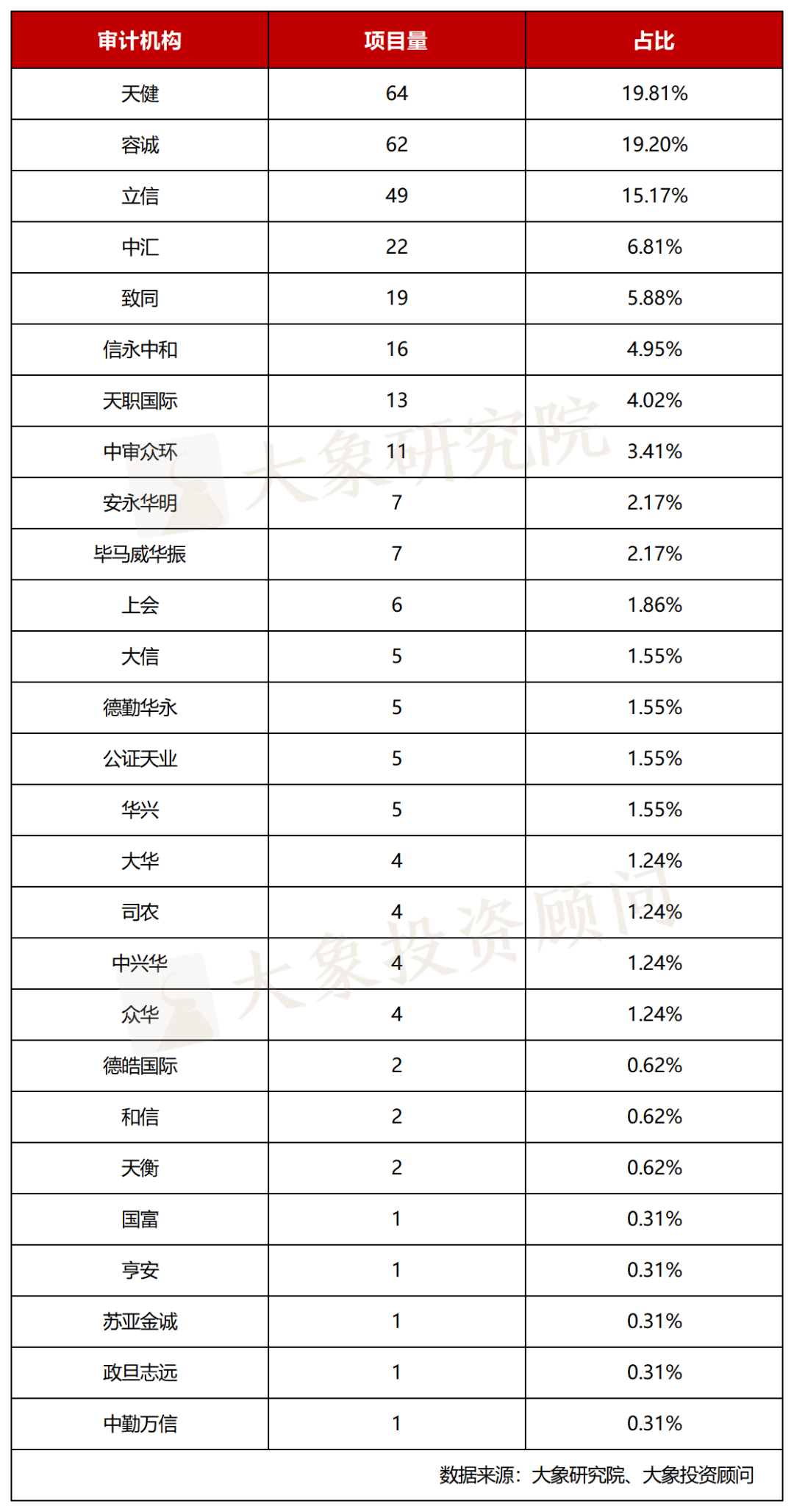 共有27家会计师事务所担任了323家排队企业的IPO审计机构,项目量排名情况如下: