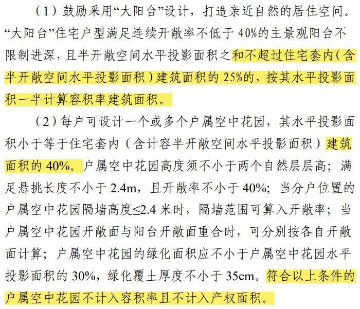 “大阳台”不超过套内建面的25%计一半计容建面,“空中花园”不超过套内建面的40%不计入产权面积。