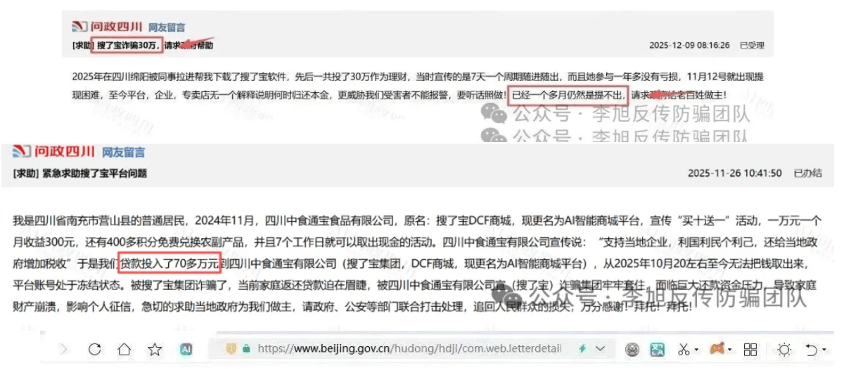 · 现状:2025年底已停运。日前,李旭反传防骗团队多方证实,“搜了宝”因涉嫌非法吸收公众存款已被立案侦查。