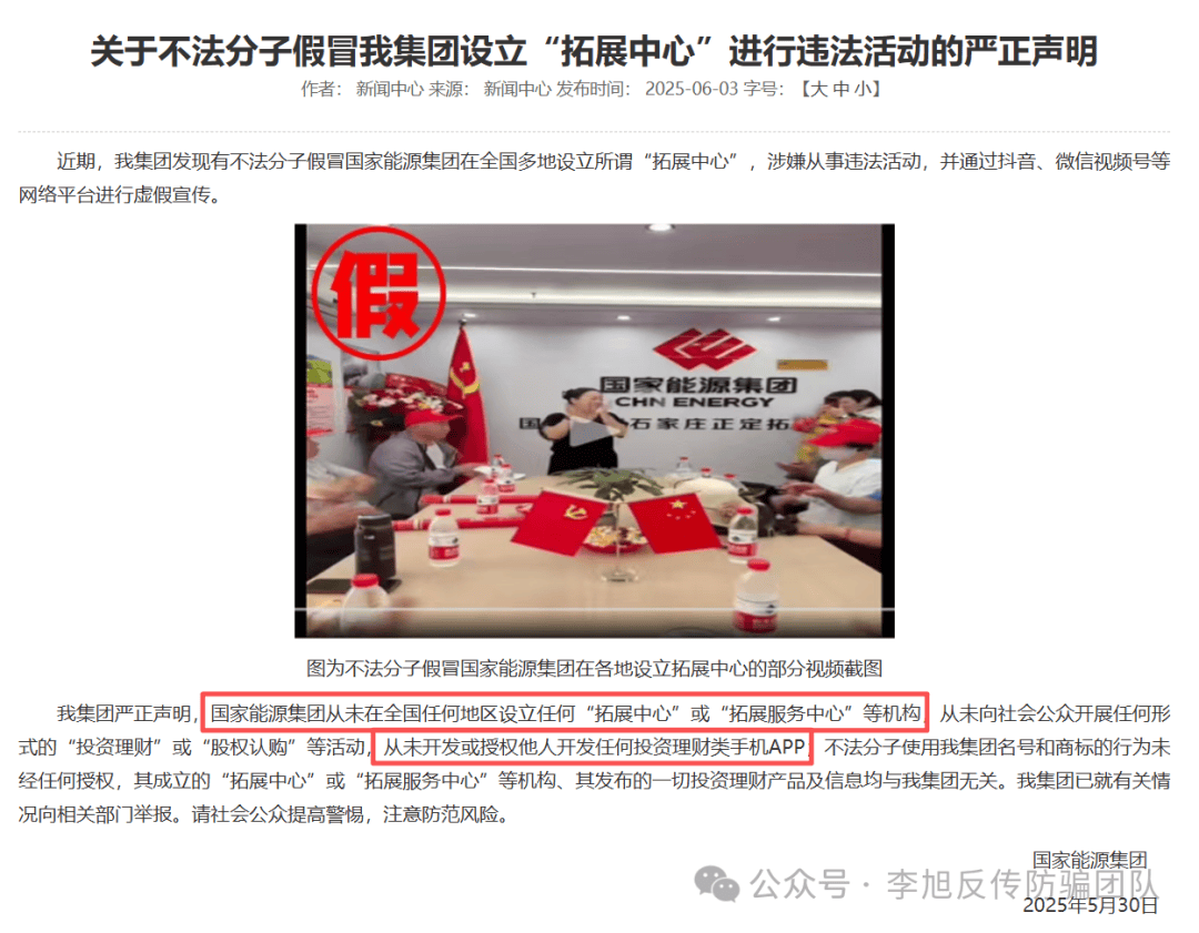 · 套路:冒用国家能源集团名义,谎称参与能源项目投资,承诺稳定高回报;延迟提现后,又以“业务调整”为由关闭提现通道,发放无法兑现的“绿色债券”安抚用户。
