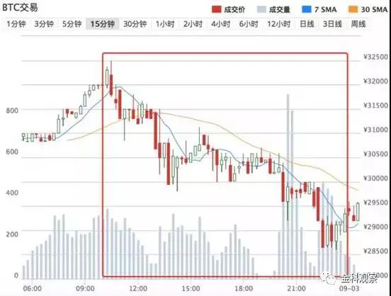 值得注意的是,自9月2日比特币价格攀升至32350元,达历史最高价后,比特币价格连续4日大跌,按照目前最低价计算,4个交易日内比特币价格已经跌去9757.69元。