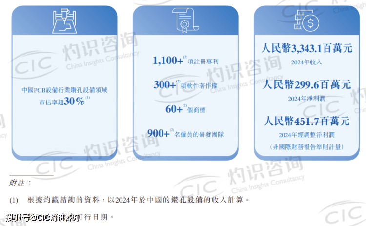 大族数控专注于打造行业价值链条,以高质量产品为客户提供综合解决方案,客户涵盖2024年Prismark全球PCB企业百强排行榜80%的企业。凭借领先的研发技术、立体化的产品矩阵和稳定的客户合作关系,自2009年以来,按收入计,大族数控已连续16年位列CPCA专用设备和仪器榜单第一名。根据 CIC 灼识咨询报告,按2024年收入计,大族数控为中国最大的PCB专用生产设备制造商,在中国市场的份额约为10.1%。其中,按2024年中国市场收入计,大族数控钻孔设备在中国市场的份额超过30%。
