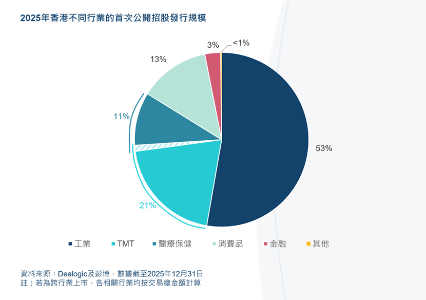根据Dealogic及彭博的数据,在工业及新能源板块,香港在新股集资规模(143亿美元)排名全球第一、股权资本市场发行规模(247亿美元)位列全球第二。这些融资活动涵盖多个行业领域,例如,一批中国内地顶尖电动车制造商及电池制造商2025年进行了大规模集资,一家亚洲龙头物流供应商也在香港成功上市。