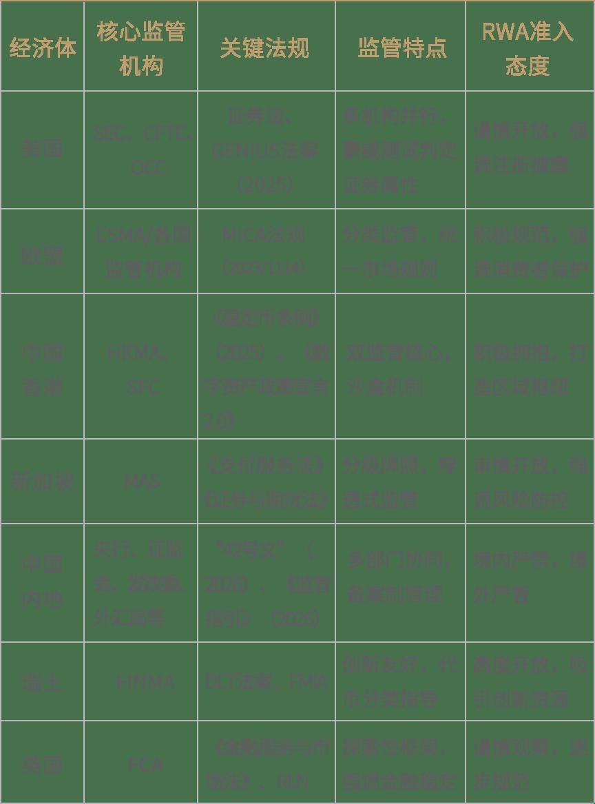 全球主要经济体对RWA代币化的监管态度呈现显著分化,从严格禁止到积极拥抱,形成了多元化的监管格局。理解国际监管趋势,对于把握中国监管框架的国际定位和跨境合作空间具有重要意义。1.
